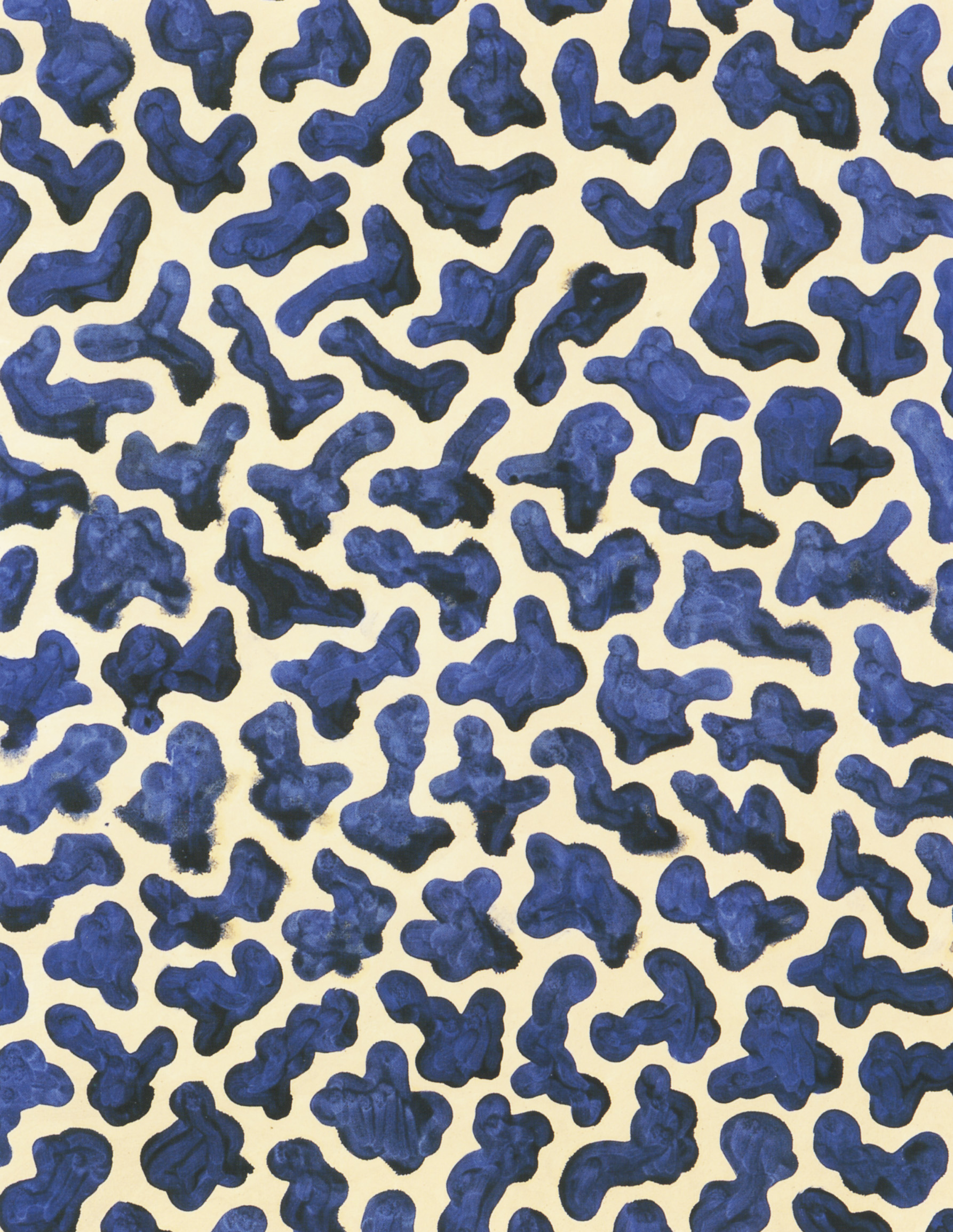 Bゼミという横浜の井土ヶ谷にある不思議な現代美術の学校を終了しこれから一体どうやって作家活動を続けて行こうか、思案の日々を過ごしていました。そんな中、娘がまもなく誕生するという日がきました。私は作家として何かを生み出さねばならない決意を持ってキャンバスに向かうといういかにも1980年代90年代のニューペインティングエージの作家のように。どうにか波に乗ることを夢見て油絵でないと作家らしくない、などと意識を高めて懸命に描いていた作品です。日々、図と地の関係が議論の中心となっていた評論文を読んでどちらも同じ強さを持って図と地が戦いあう作品を作るのはどうか、などと思案していたのでした。この時代、私は、動物の動きに興味があり毎週動物園に通ってスケッチを続けていました。ここに描かれているのは、その脳裏に記録されてきた残像がスキャンされるように動く形となり手の中から偶然生まれてきた有機形なのです。ところがこの記念碑的な作品は、一度も発表した記憶がありません。1990年12月15日完成